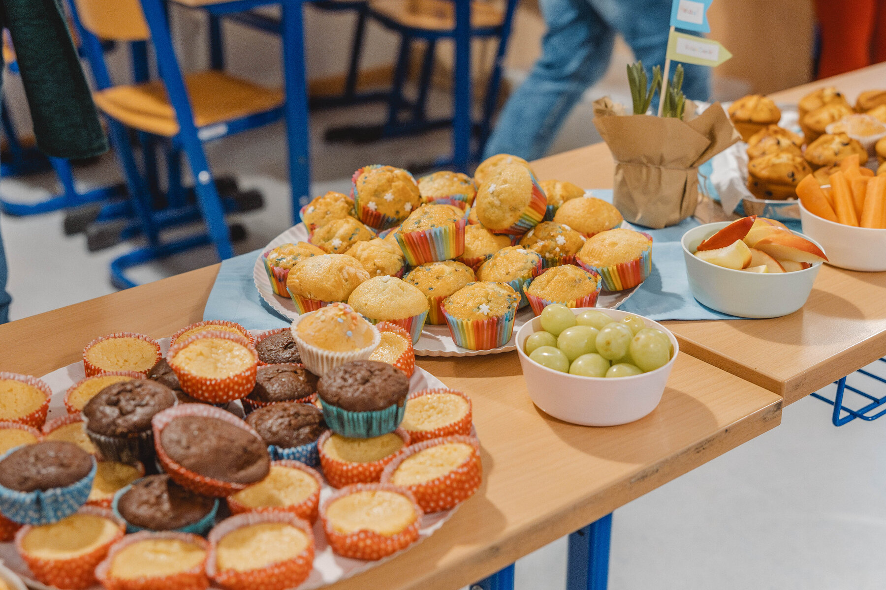 Ein besonderer Dank geht an den Förderverein unserer Schule, der für das leibliche Wohl sorgte. Er bot den Kindern gesundes Obst und Gemüse sowie süße Muffins und Leckereien in Buffetform an. Hier wurde kräftig genascht!